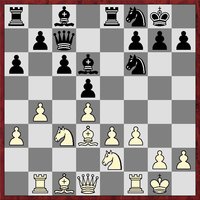 1. d4 Pf6 2. c4 e6 3. Pc3 Lb4 4. e3 o-o 5. Pge2 d5 6. a3 Le7 7. cxd5 exd5 8. Pf4 c6 9. Ld3 Te8 10.o-o Pbd7 11. f3 Pf8 12. b4 (Wit is iets minder uit de opening gekomen) 12. ….a6 13. Tb1 Ld6 14. Pfe2 Dc7 Zie diagram
