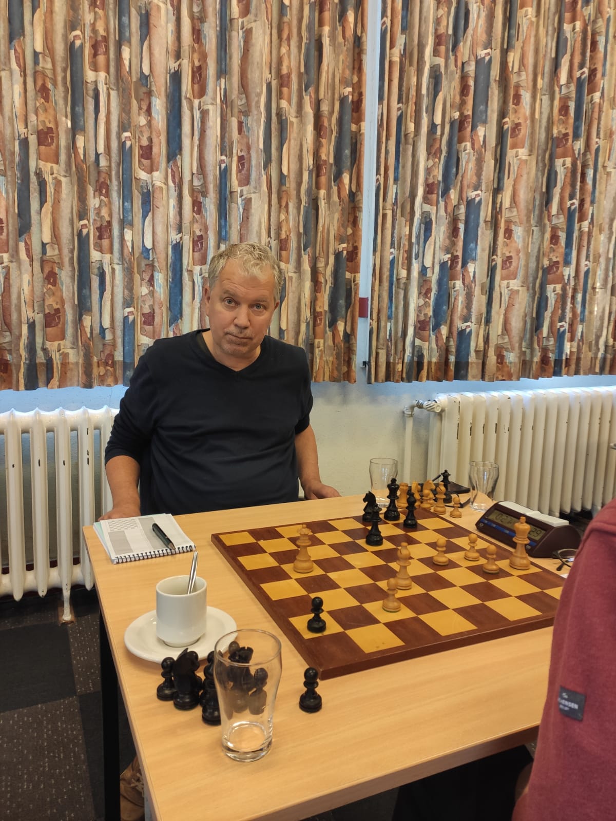 John Riksen speelde de partij van de dag op bord 4. Met de van hem bekende kleine middeltjes zette hij zijn tegenstander, de hoogste gerate Spakenburger, onder druk. Die kon uiteindelijk de batterij van dame en twee torens in het centrum niet weerstaan en besloot voor twee torens voor de dame te gaan. Hoewel twee torens vaak in het voordeel zijn, waren de zwarten in dit geval vrij passief. Riksen had er ook nog twee reuzen van vrijpionnen bij en die marcheerden zonder problemen naar de overkant.